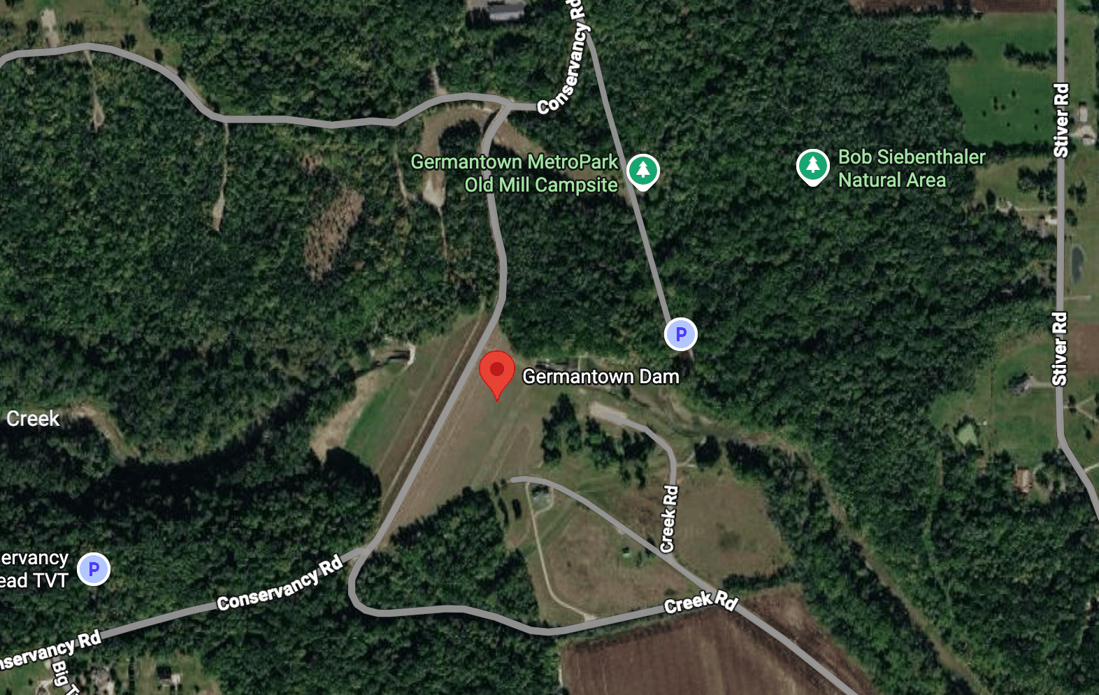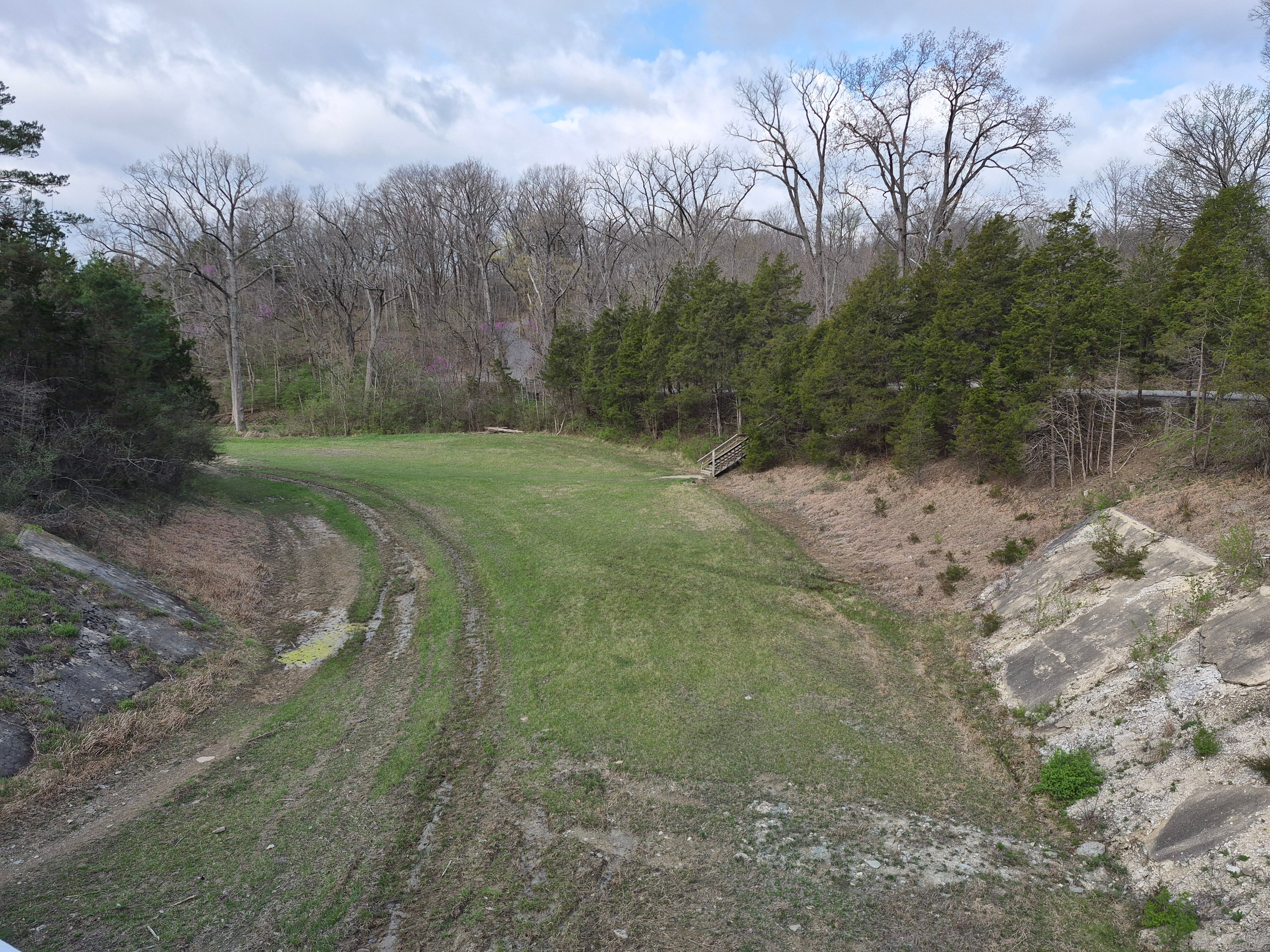 The above view from Google Maps shows the spillway north of the dam, reconnecting to Twin Creek on Old Mill Road.