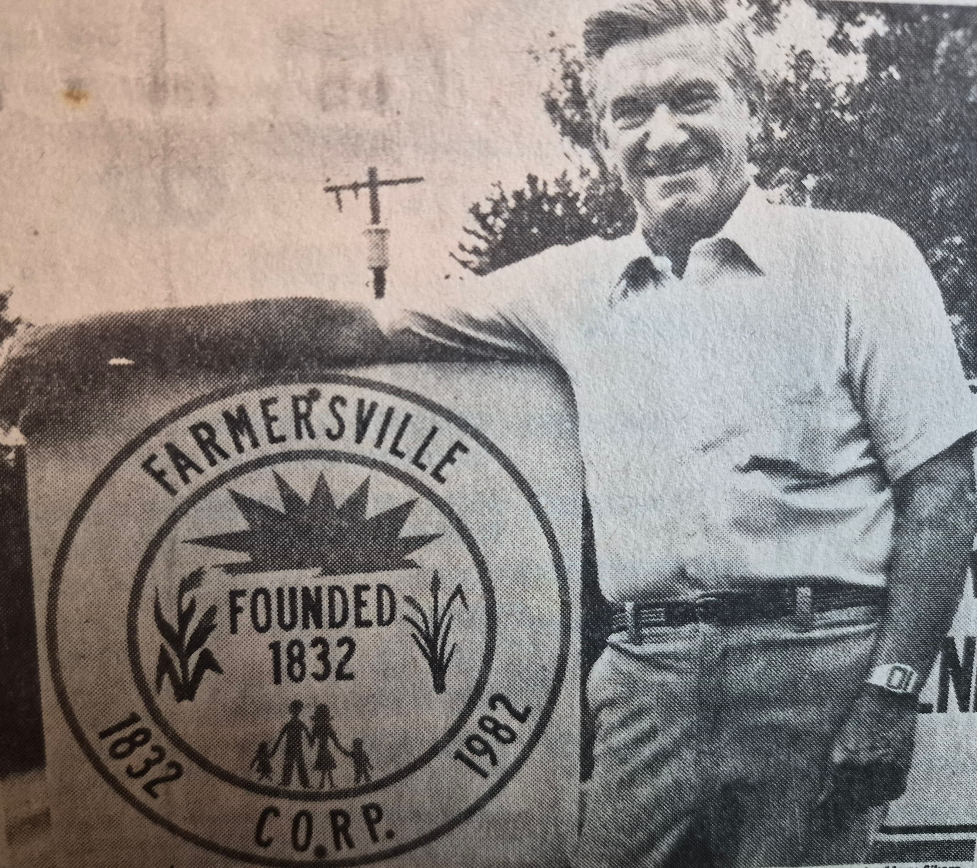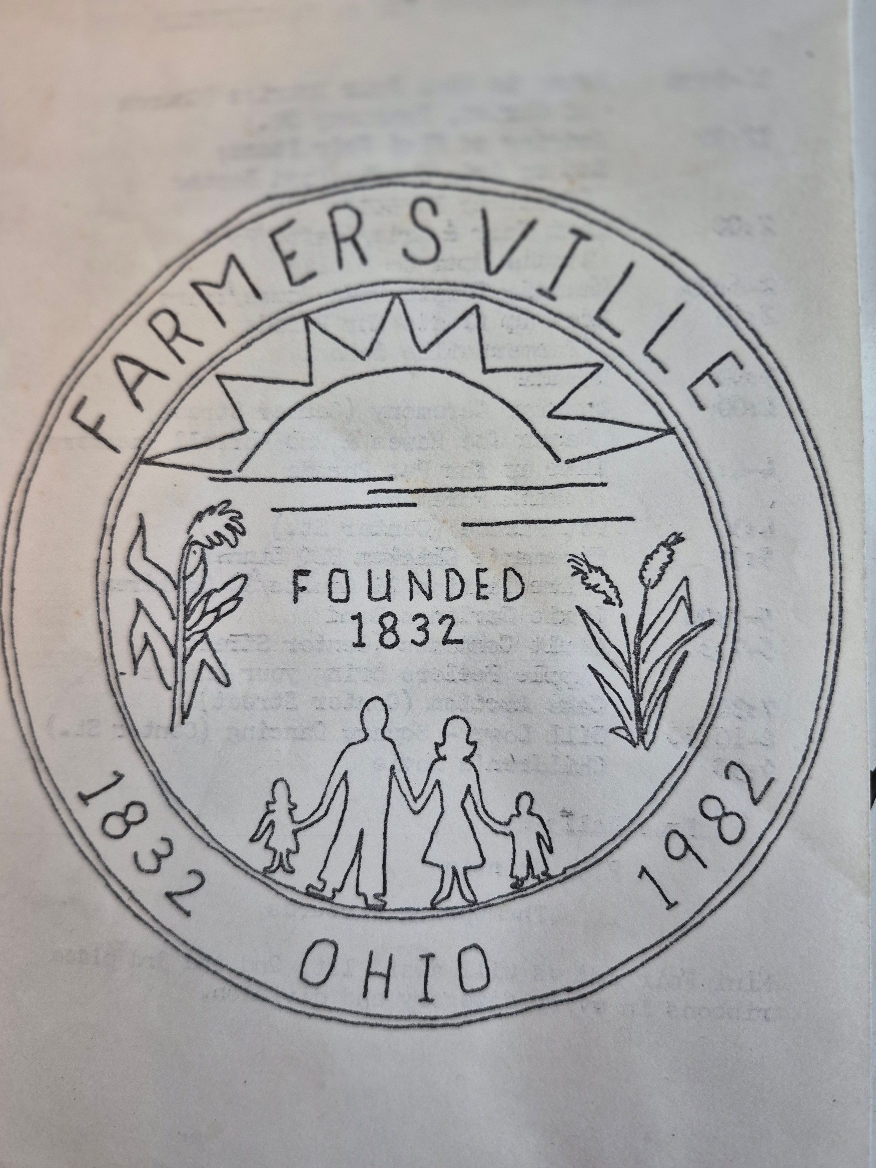 Farmersville logo created for the 1982 sesquicentennial used as the cover for a booklet on Farmersville history published by the Farmersville Historical Society.