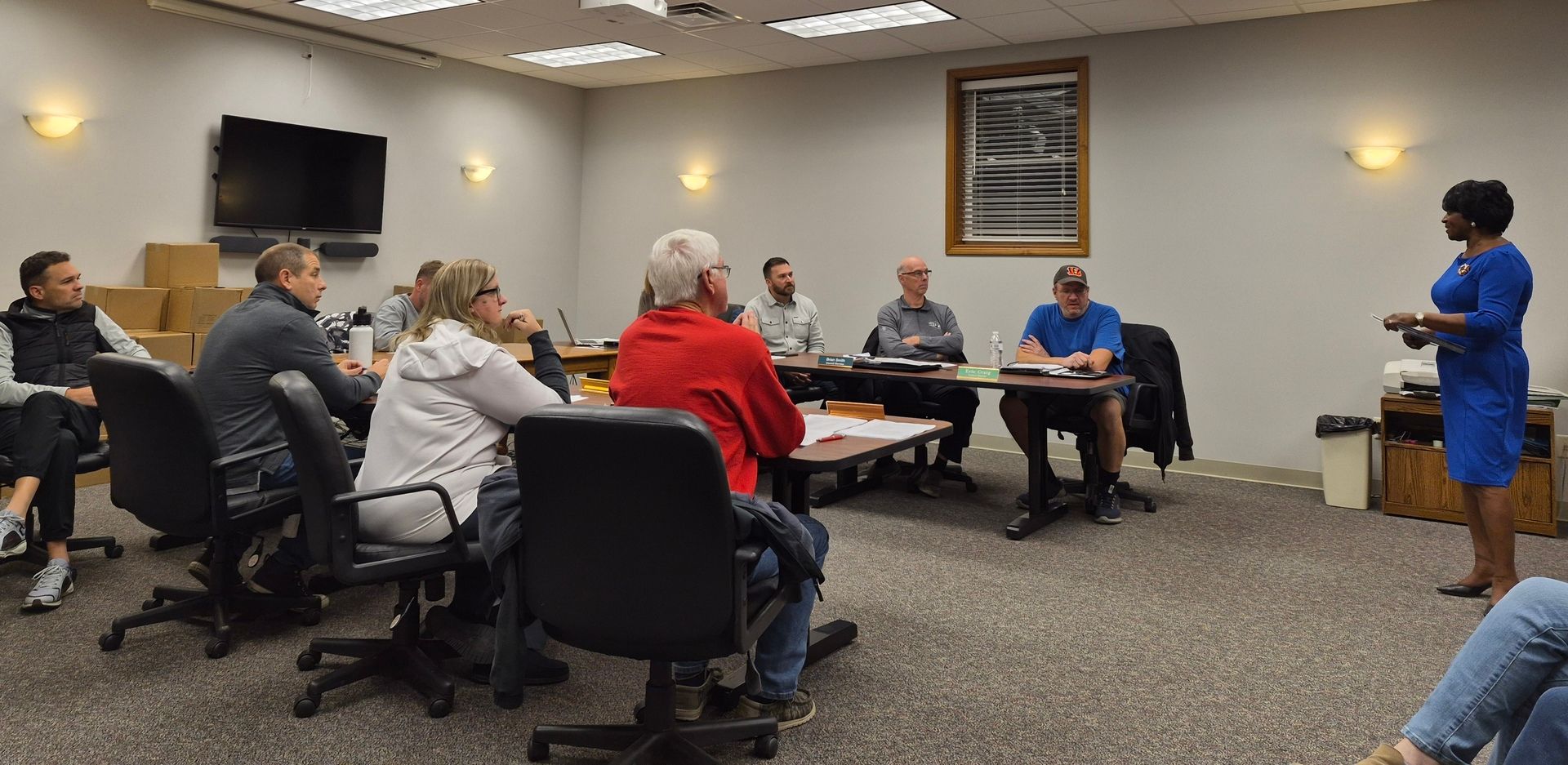 Farmersville Village Council at its December 2025 meeting, hearing from County Commissioner Mary McDonald