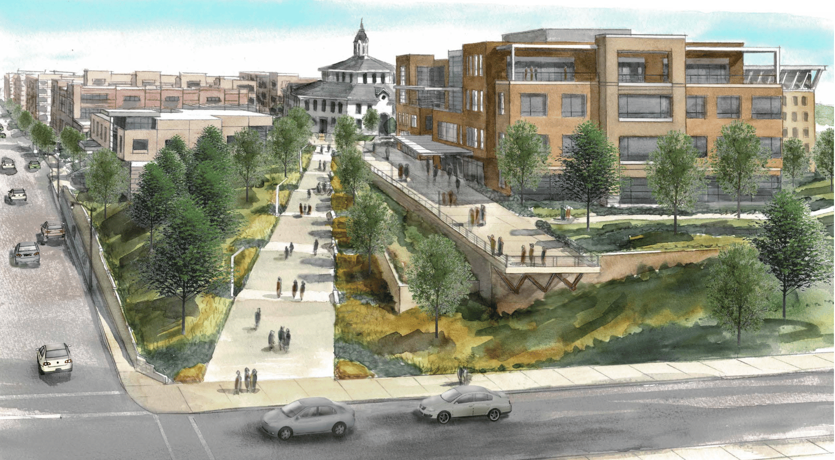 Rendering of onMain development with Main Street entryway to the Roundhouse 📸 onMain